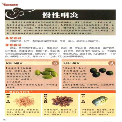 首页 >> 食疗食谱 >>第四章 呼吸科 >> 【慢性咽炎】食疗食谱