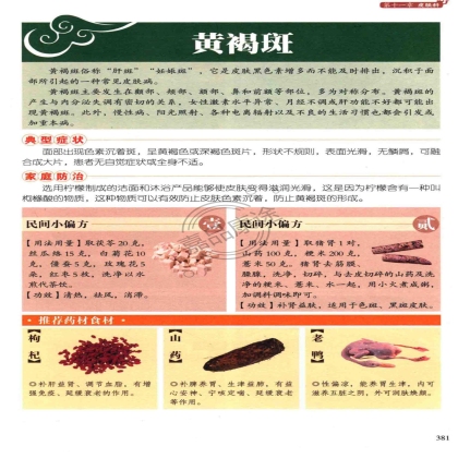 黄褐斑:黄褐斑俗称“肝斑”“妊娠斑”,它是皮肤黑色素增多而不能及时排出,沉积于面部所引起的一种常见皮肤病。黄褐斑主要发生在颧部、颊部、额部、鼻和前额等部位,多为对称分布。黄褐斑的产生与内分泌失调有密切的关系,女性激素水平异常、月经不调或肝功能不好都可能出现黄褐斑。此外,慢性病、阳光照射、各种电离辐射以及不良的生活习惯也都会引发或加重本病。 典型症状 家庭防治:选用柠檬制成的洁面和沐浴产品能够使皮肤变得滋润光滑,这是因为柠檬含有一种叫枸橼酸的物质,这种物质可以有效防止皮肤色素沉着,防止黄褐斑的形成。 |