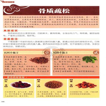 骨质疏松:骨质疏松症已成为世界性的多发病。现代医学把骨质疏松症分为两类:其一,原发性骨质疏松症,主要是老年骨质疏松症。其二,继发性骨质疏松症,主要是由一些其他病症引起,如糖尿病、甲状腺功能亢进等。该病女性多于男性,常见于绝经后妇女和老年人。随着我国老年人口的增加,骨质疏松症发病率处于上升趋势,在我国乃至全球都是一个值得关注的健康问题。 典型症状 家庭防治:不管是哪个年龄阶段的人群都要注意钙的摄入量,要通过多吃含钙食物来补钙。日常饮食中要增加钙和蛋白质的摄入量。要养成良好的生活习惯,如不吸烟和少饮酒,多参加体育运动,多晒太阳。 |