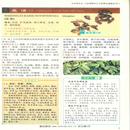 羌 活别名:Nolopterygium ineisiun TingexLT.Chang RHIZOMAET RADIX NOTOPTERYGLL Qianghuo 别名:羌青,扩羌使者,胡王使者,羌滑,黑药,退风使者。 《本草纲目》记载羌活:“治贼风失音不语,多痒,手足不遂,口面斜,遍身麻痹,血瘫。” |