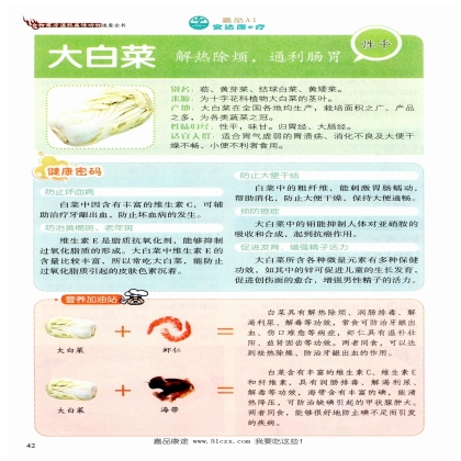 首页 >> 食物功效 >>2蔬菜类性昧寒热功效 >> 【大白菜】 解热除烦,通利肠胃