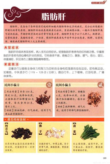 脂肪肝:脂肪肝,是指由于各种原因引起的肝细胞内脂肪堆积过多的病变,是公认的隐蔽性肝硬化的常见原因。脂肪肝其临床表现轻者无症状,重者病情凶猛。一般而言脂肪肝属可逆性疾病,早期诊断并及时治疗常可恢复正常。脂肪肝多发于以下几种人:肥胖者、过量饮酒者、高脂饮食者、少动者、慢性肝病患者及中老年内分泌患者。肥胖、过量饮酒、糖尿病是脂肪肝的三大主要病因。 典型症状 家庭防治:脂肪肝的临床表现多样,病人多无自觉症状。轻度脂肪肝患者有的仅有疲乏感,中重度脂肪肝患者有类似慢性肝炎的表现,可有食欲不振、疲倦乏力、腹胀、嗳气、恶心、呕吐、体重减轻、肝区或右上腹胀满隐痛等感觉。适量进行以锻炼全身体力和耐力为目标的全身性低强度的动态运动,即有氧运动,如慢跑、中快速步行(115~125步1分钟)、骑自行车、上下楼梯、打羽毛球、广播体操等。