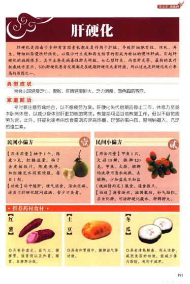 肝硬化:肝硬化是指由于多种有害因素长期反复作用于肝脏,导致肝细胞变性、坏死、再生。肝组织弥漫性纤维化,以假小叶生成和再生结节的形成为特征的慢性肝病。引起肝硬化的病因很多,其中主要是病毒性肝炎所致,如乙型肝炎、丙型肝炎等。最新的医疗权威统计显示,50??硬化患者发现都是在晚期肝硬化或者肝癌,所以这也是肝硬化死亡率高的原因之一。 典型症状:平时要注意劳逸结合,以不感疲劳为度。肝硬化失代偿期应停止工作,休息乃至基本卧床休息,以减少身体对肝脏功能的需求。恢复期可适当地恢复工作,但以不自觉疲劳为宜。此外,肝硬化患者的饮食原则应是高热量、足够的蛋白质、限制钠摄入、充足的维生素。