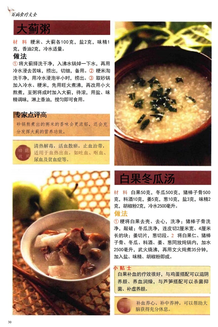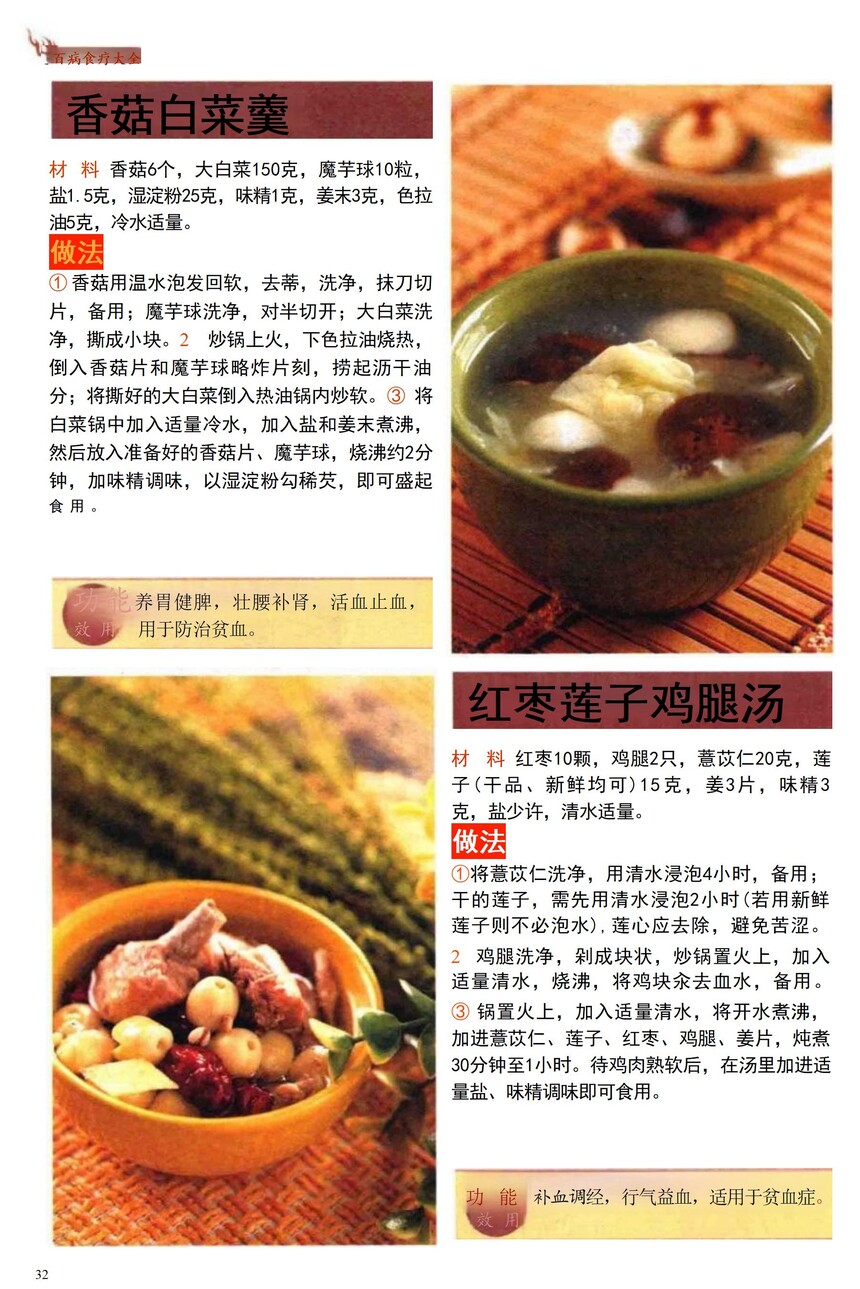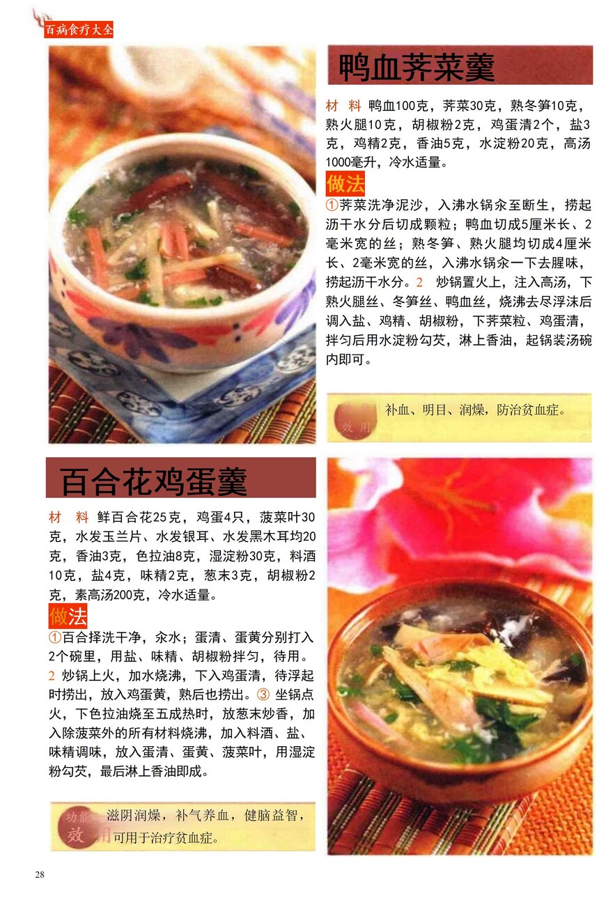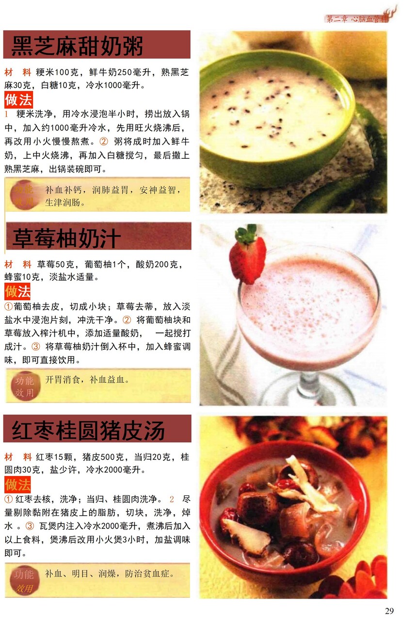 白果冬瓜汤,石榴花粥,当归玫瑰茶,黑芝麻山药羹,香菇白菜羹,红枣连子鸡腿汤